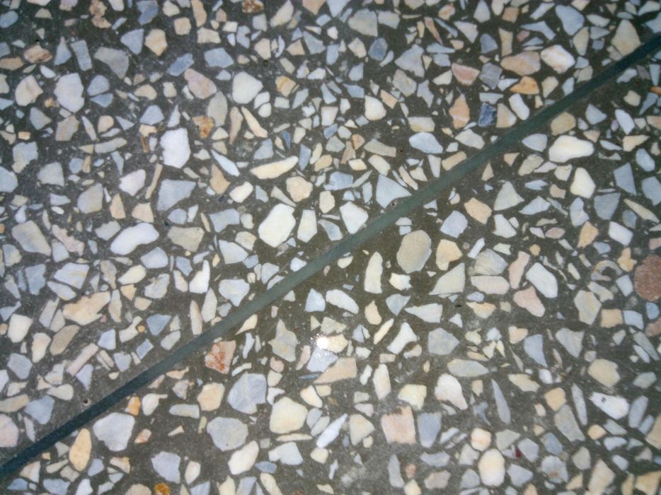 Мозаичный пол представляет собой слой толщиной 20-25мм на бетонном или цементно-песчаном основании. В качестве наполнителя используется мраморная крошка размером фракции до 15мм. Наполнитель, как правило, составляет 75-85% от общего объема смеси. Часто мозаичный пол делают путем вдавливания мраморной крошки в свежеуложенный цемент.